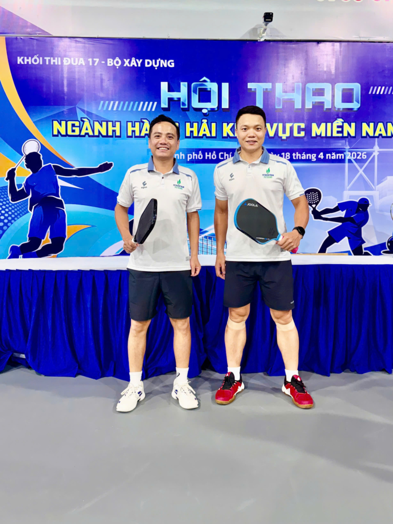 Với tinh thần thi đấu nhiệt huyết, đoàn kết và đề cao fair-play, đoàn vận động viên của Công ty đã tích cực tranh tài ở bộ môn Pickleball. Đại diện tham gia thi đấu là cặp vận động viên Hồ Trọng Hải – Nguyễn Hoàng Anh (Phòng Đại lý Hàng hải). Bằng sự tự tin, bản lĩnh và quyết tâm, các vận động viên đã cống hiến những trận đấu sôi nổi, hấp dẫn, qua đó lan tỏa hình ảnh năng động, chuyên nghiệp của Thang Long Maritime trong cộng đồng ngành Hàng hải.
